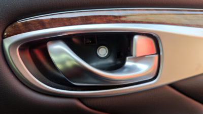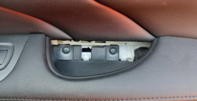 続いてはドアのひじ掛け部分にある取っ手の奥のカバーも外します(コレも外しにくい)。すると現れるプラスネジ2本を外します。