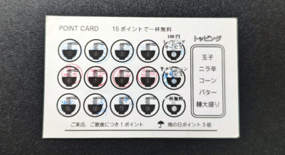 そんなわけで空き枠が2になりました。スープ飲み干しで2ポイントなので、次回でスタンプカードが埋まります。そして3月中に1杯無料をいただいて・・・スタンプカードお役御免が成就する予定。