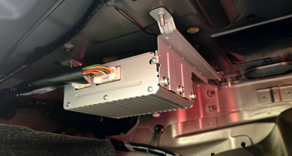 前例的にはアンプっぽいということで、アンプの在処を確認したところ・・・トランクの内張を外して、助手席側(進行方向左側)の上部にあるユニットが、ANC のコントローラー兼アンプということらしい。