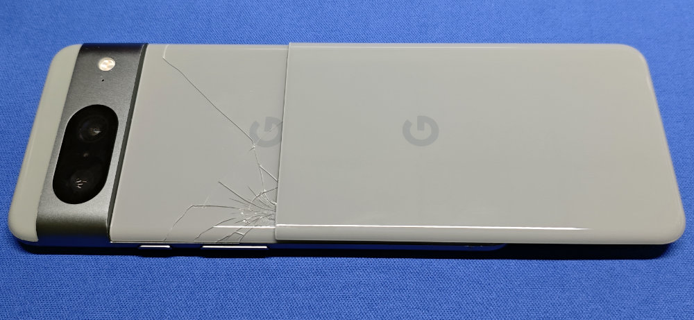 せっかく交換して割れがないキレイな状態にしたばかりの Google Pixel 8 でしたが、すぐに落下させてしまい再び背面パネルを割ってしまっていました。