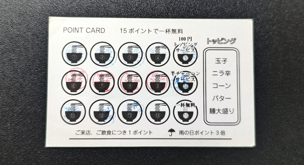 そんなわけで空き枠が2になりました。スープ飲み干しで2ポイントなので、次回でスタンプカードが埋まります。そして3月中に1杯無料をいただいて・・・スタンプカードお役御免が成就する予定。