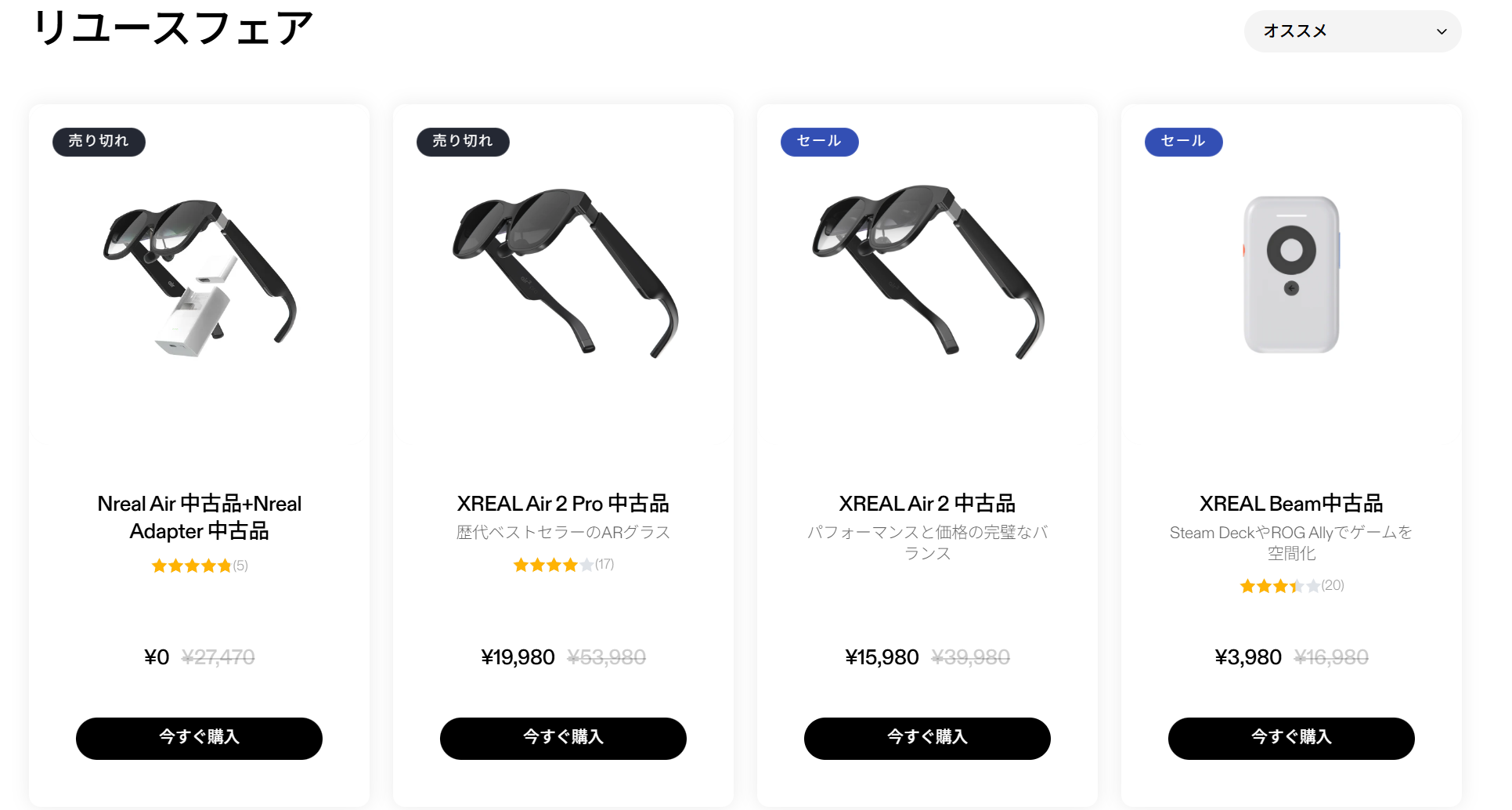 XREAL Air 愛用中のワタシですが、その XREAL の公式ショップで1月16日~26日にわたってリユースフェアが行われております。