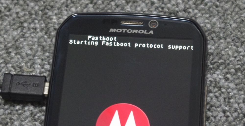 無事完了したら、一旦バッテリーを外して電源 OFF して、今度はボリュームダウンを押しながら電源 ON。その後ボリュームアップを押して fastboot モードに入ります。