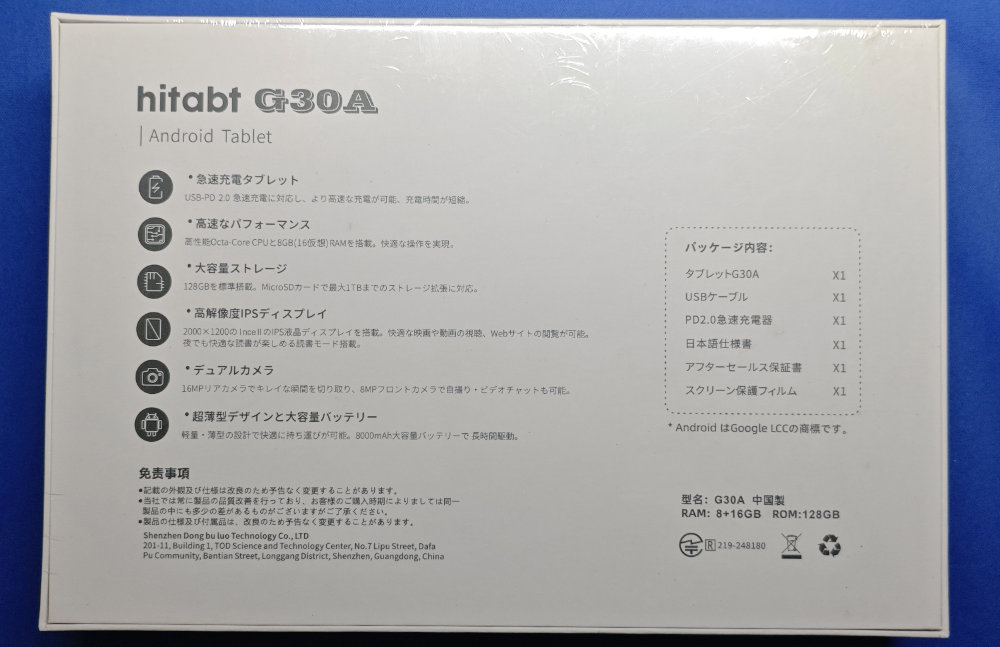 hitabt G30A という格安中華 Android タブレットです(爆)。楽天で安かったので手を出してみたのですが・・・商品ページは消滅しています。通常価格は24,837円らしいのですが、18,000円オフクーポンとかいう意味不明なクーポンで6,837円という激安価格。余っている楽天ポイント突っ込んで、支払い0円でゲットです。Amazon でも一時期7千円台で販売されていたらしい。