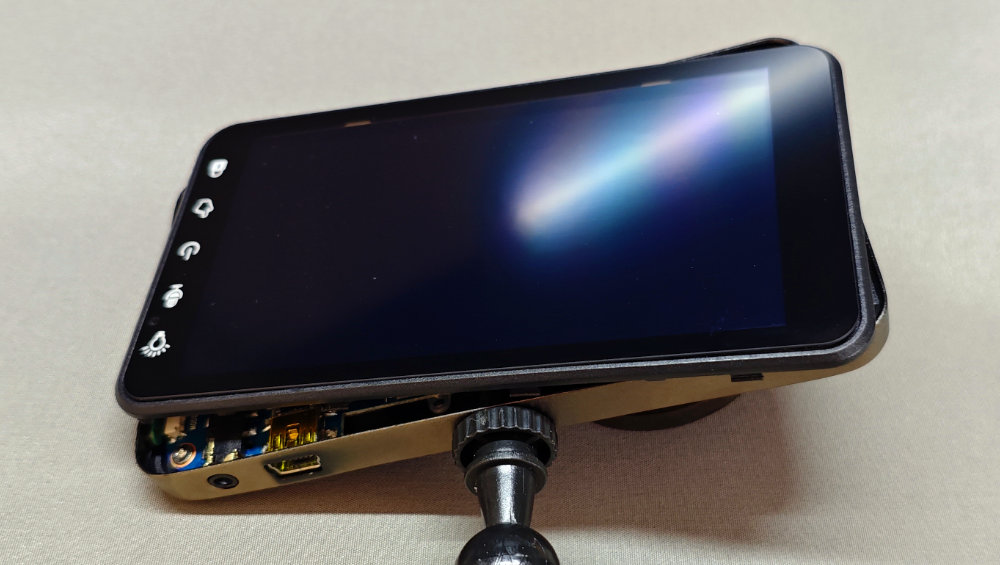 最初は内蔵されたバッテリーが膨張して押し出したのかとも思ったけど、若干膨らみはあるものの液晶画面を押し出す程に膨れてはいないので・・・単純にプラスチック部品の劣化が原因っぽい。リアガラス越しとはいえ、長年直射日光にさらされてたら仕方ないかな。