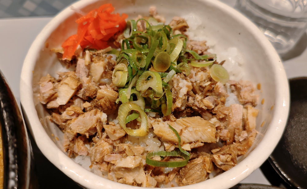 チャーメシはラーメンに乗ったチャーシューよりも柔らかくほぐしてあって、タレがかかっているのですが・・・タレの味がかなり薄めで量が少ない。完全に紅生姜の味に負けてしまって、混ぜて食べたらほぼ紅生姜味でした。また、お米がユルユルで残念感強め。こういうラーメンのお供のライスは硬めじゃないとねぇ。餃子も3個中2個が皮の合体部分が外れてしまってて、実はもっと肉汁あったのかも?? という状態。