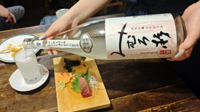 この日のスペシャル日本酒は2種類あるうちから1本をチョイス。迷うことなく右側のみむろ杉(笑)。