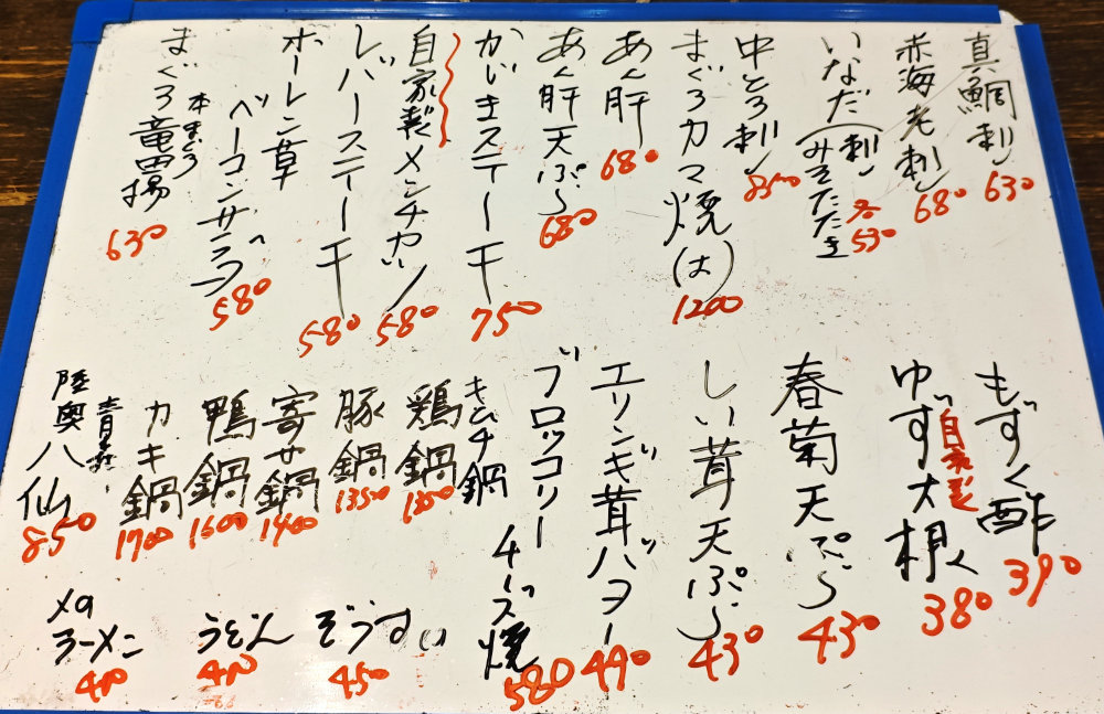 この日のオススメボード。前月とは、やはり若干違いがありますな。