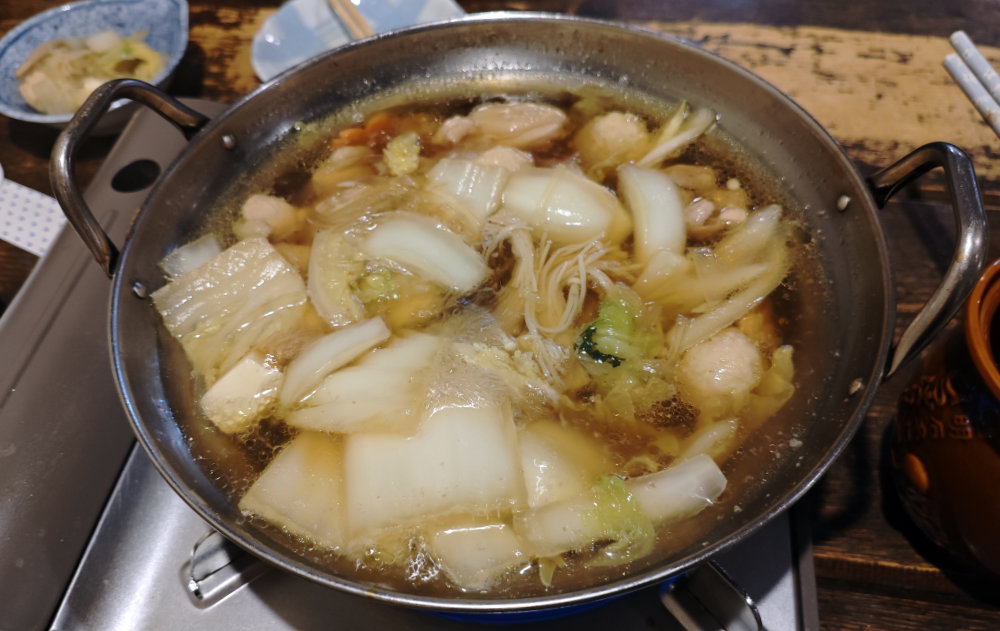 鍋完成。2人前ですが、結構タップリあってお腹いっぱいになります。イイ出汁が出たのでうどんかご飯投入して〆としたかったのですが、〆は無し。