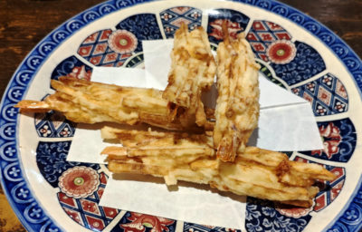 天ぷらもイイ感じ。他にもカニ味噌が入った細巻きやら、焼きサバ、〆のうどんという感じで盛り沢山。かなりのボリュームでコスパ良すぎですな。後半の写真がないのは・・・飲んでメンドクサってなったから(笑)。