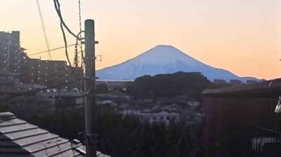 T氏の都合により、普段より1時間遅めのスタートということで・・・善行近くの住宅街から夕焼けの富士山をチラ見。もうちょっと抜けの良い場所に移動すると、ココでは左側に見えているマンションが見事に富士山を隠してしまいます。