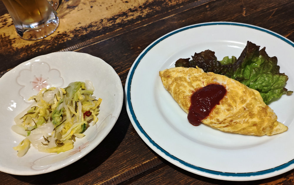 ゆず白菜とチーズオムレツ。ゆず白菜は激烈に美味いので、この後何度もオカワリしました。