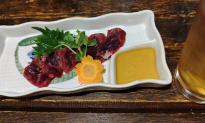 まぐろのど肉刺し。コレも数量限定だったようで、後半オススメボードから消滅していました。