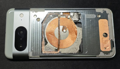 当初はオサイフ機能も重視して入手した Pixel 8 でしたが、現状オサイフ機能は iPhone に集約しているので無くてもイイかな、という判断。むしろ無線充電の方が使う可能性が高いかな、ということで他のスマホの NFC アンテナ移植を断念しました。