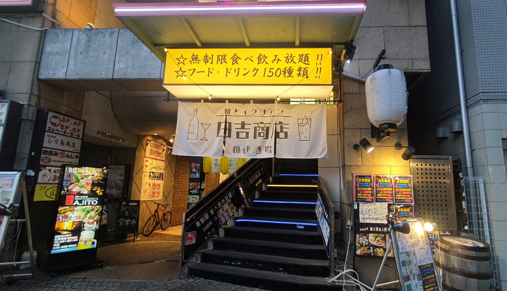 平日ですけど飲むのです。当初予定してなかったんですが、急遽ライブが中止になって時間ができたから・・・とお誘いを受けて横浜に参上。時間無制限でユッタリできるらしいとオススメされた日吉商店へ。