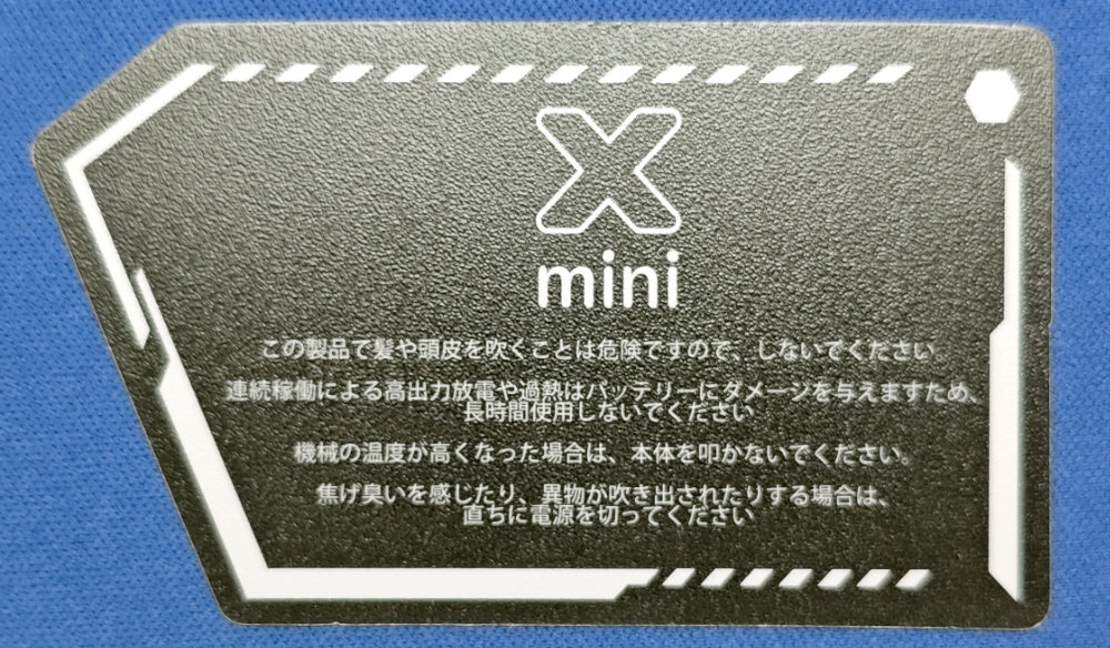 グリップ底部に X mini の刻印。ファンが入ったヘッド部分とこのグリップ底部は 3D プリンタの出力そのまんまな気がします。