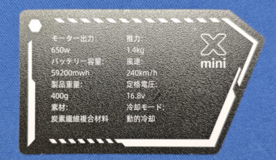 バッテリー容量は 59200mwh と書かれていますが、650W のモーターフル稼働だと5分程しか持たない計算になりますなぁ。一応 3.7V のリチウムイオン電池で換算すると 16,000mAh。18650 じゃなくて 21700 あたりが4本入っているとすると、1本あたり4,000mAh なら・・・まぁ、妥当な数字かな??