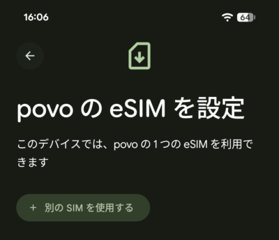 Pixel 8 では eSIM を有効にしたら準備 OK。無事に povo 回線で通信ができました♪