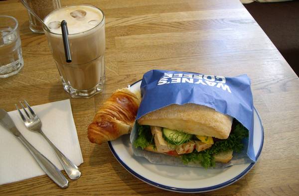 お昼ごはんはその近くの WAYNE’S カフェで TOFU サンドとアイスラテ+シナモンフレーバーカスタムを頂きました。フィンランドでトーフって!! ちょっと固めだったけど、甘辛チリソースとも相性がが良くって美味しかった。