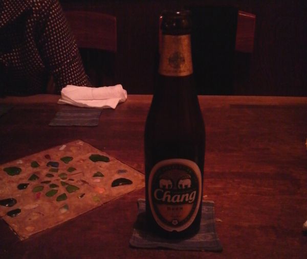 私はビール党なのでずっとレーベンブロイだったのですが、最後に変わったものを注文。Chang というタイのビール。苦味がほとんどなく、軽い飲み口のビールでした。タイのビールと言えば「シンハー」を思い浮かべますが、今やこっちのチャーンの方が有名なのかな?
