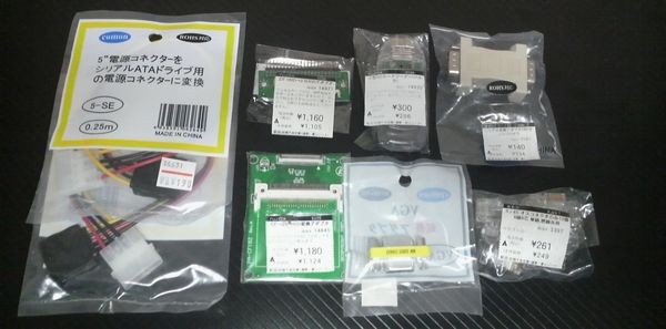 狭い店内は土曜日のせいか大混雑。あまりゆっくり物色できませんでした。戦利品は以下のものたち・・・思わず LOOX U の SSD 化を見越して変換コネクタを購入。・・・予定外でしたが、まぁいいか。