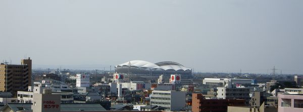 T村家からはビッグスワンが見えます。2日目の朝、最大望遠(っても4倍)で撮影。