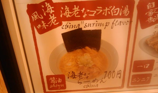 悩んだ末に、いきなり冒険。海老名とかけた「海老ならーめん」なるものを注文。