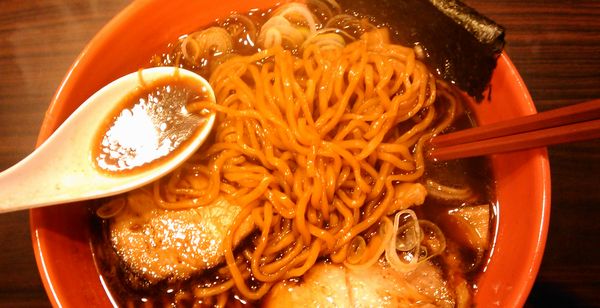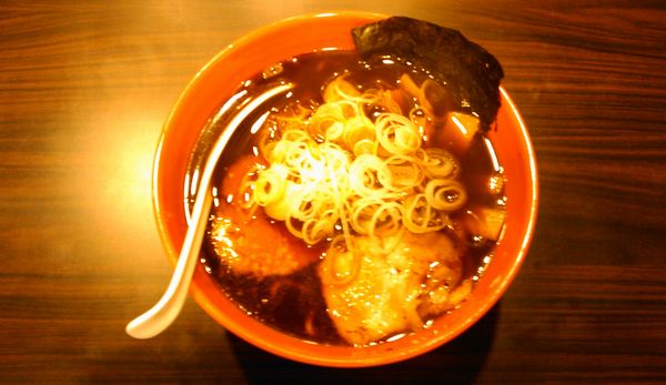 想像どおり、スープは真っ黒。説明書きによれば、秘伝の魚醤を長時間煮込んだスープと丸鶏と野菜を煮込んだスープがベースになっているようです。