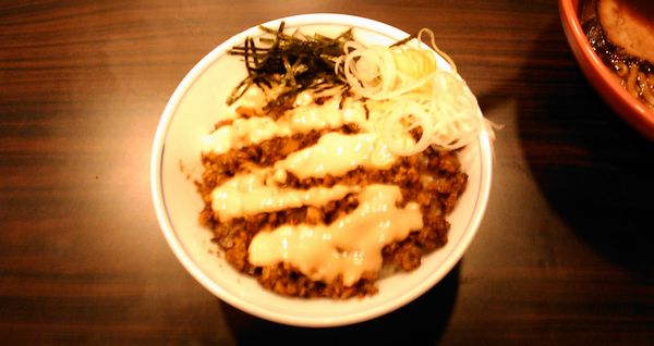 オプションのチャーシューそぼろマヨごはんもサウザンドレッシングのようなマヨネーズが多すぎて、そぼろの味がわかりません。そぼろの油っぽさに拍車をかけてちょっと気持ち悪いかな・・・(若い人やマヨラーにはうれしいのかも?)