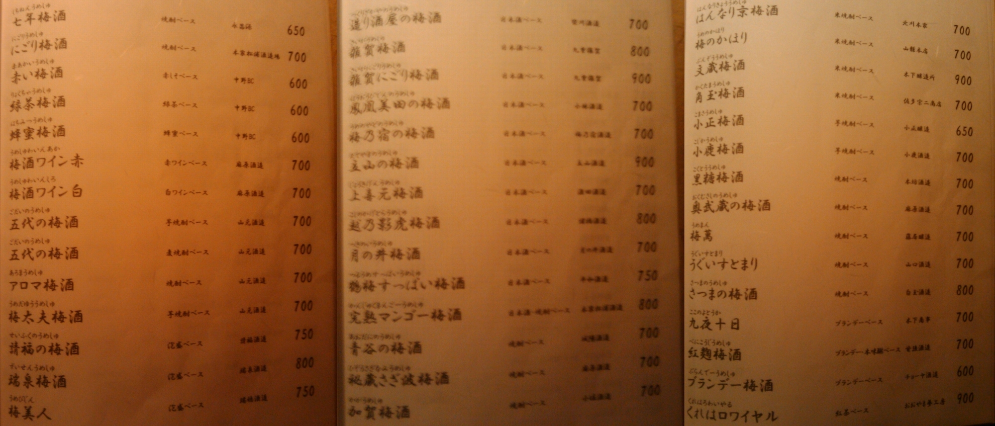 M田氏を待っている間に奥様合流。2軒目は「くんなまし」というお店へ。日本酒、焼酎、梅酒の種類が沢山でなかなか良いお店でした。私は色々な梅酒を堪能。美味しかったです。
