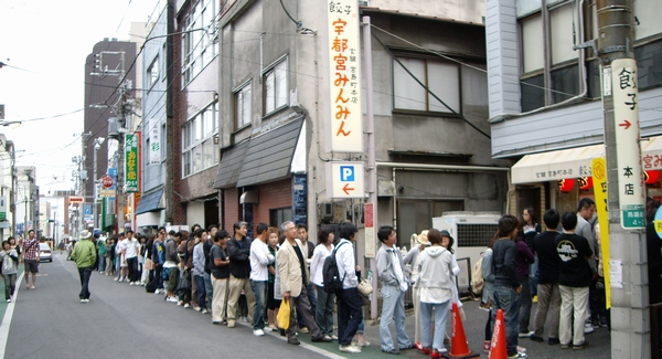 一番行きたかった「正嗣」は大行列な上にすでに待つ客もお断り状態。はしご予定だった「みんみん」も大行列・・・2時間待ちと言われるも並んでみました。