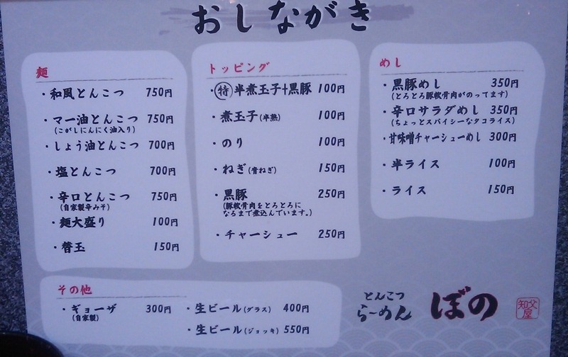 前回ちょっとご不満だった「ぼの」ですが、実は先週リベンジに行っておりました。投稿するのを忘れていたので今更ながらアップ!! なんかラーメンネタ連投で、ラーメン blog になってきているような・・・(汗)
