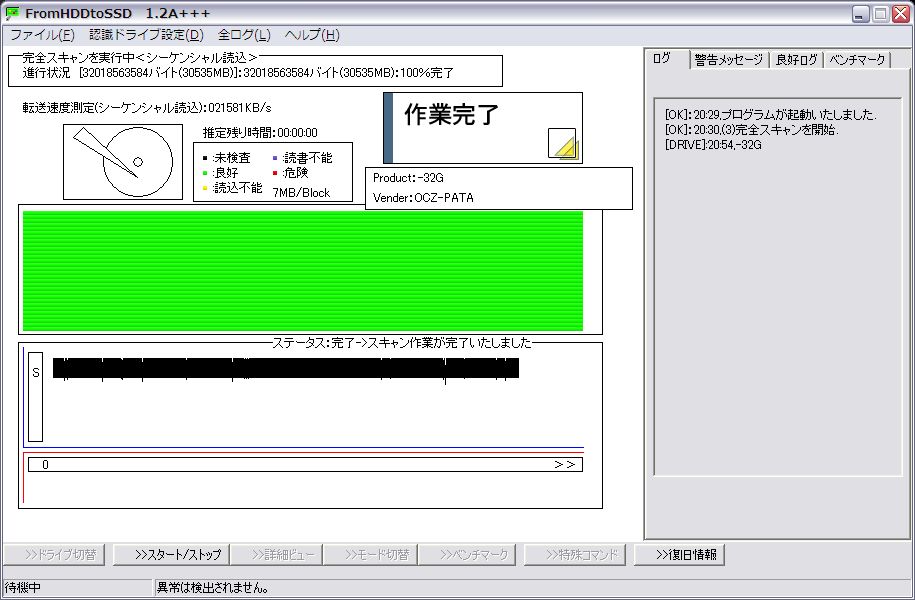 確認するために、SSD の検査を行うツールでチェックをかけてみました。使ったツールは FromHDDtoSSD For FreeEdition Ver1.2A+++ というなんとも長ったらしい名前のツールです。