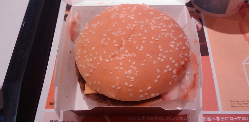 昨年12月にノーマルなヤツを食べて以来ですが、その時は「ケチャップ味が NG」って思ったのですが、このソースも私には NG でした。もっと純粋にペッパーのみとかで大人っぽい味付けにはできないのかな・・・ああ、そうするとパティの素材が良くないとダメですな(笑)
