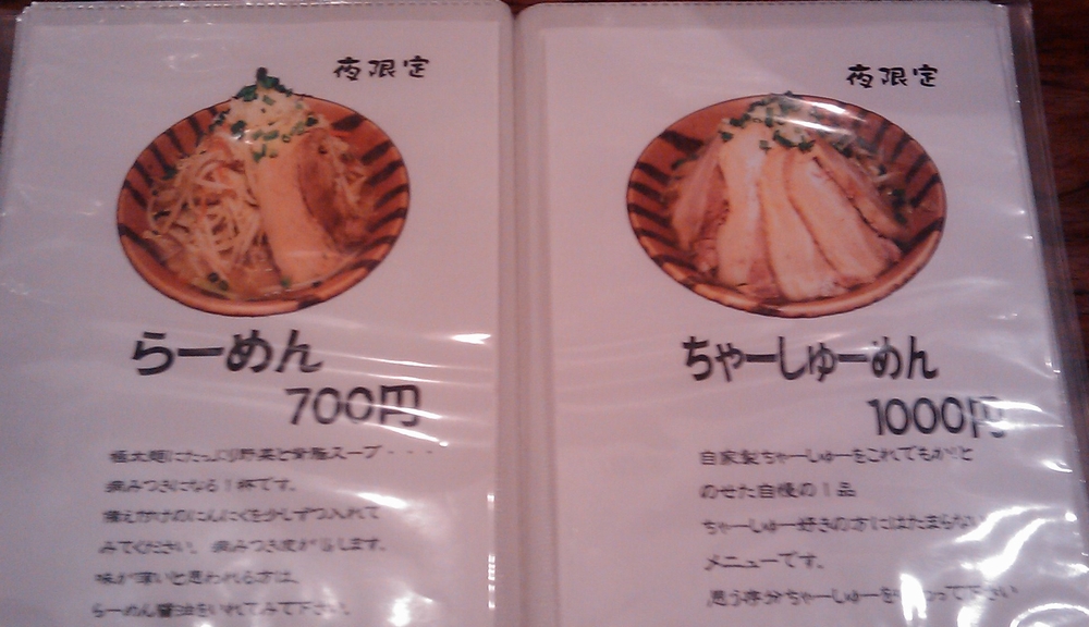 オーダーしたのは夜の部ラーメン、700円。待っている間に食券を渡したにも係わらず席に着いてからもなかなかやってきませんでした。