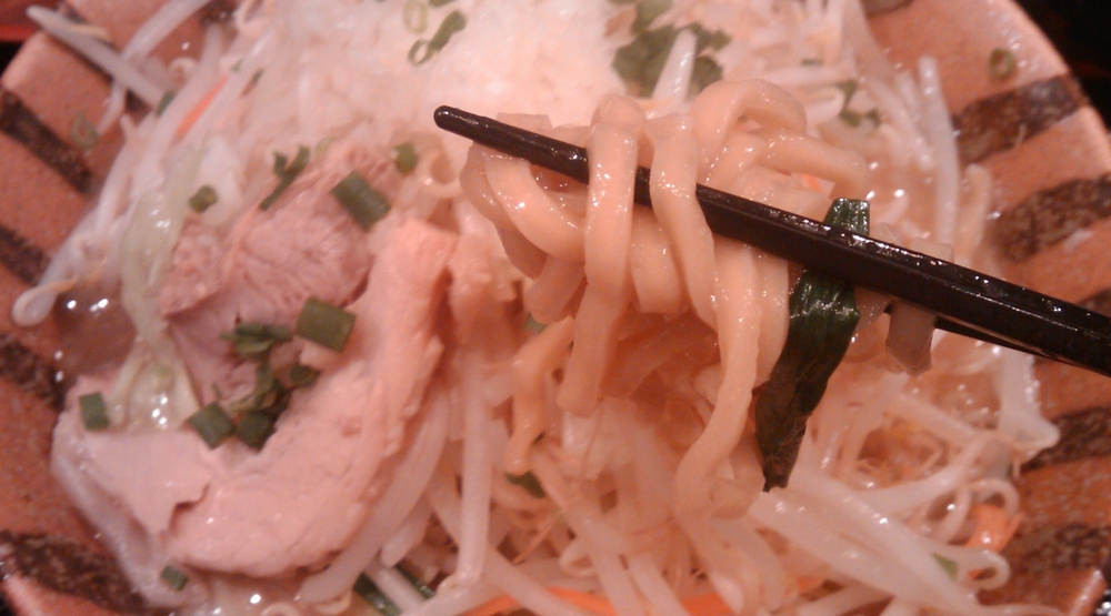 なんか物足りない感じがしたので、テーブルにあったスープや黒胡椒、にんにく等を投入しましたが、やっぱりちょっと残念な感じ・・・麺は非常にイイ感じなので、勿体無いですね・・・相方はもやしにはほとんど手をつけず、麺だけ食べていました。