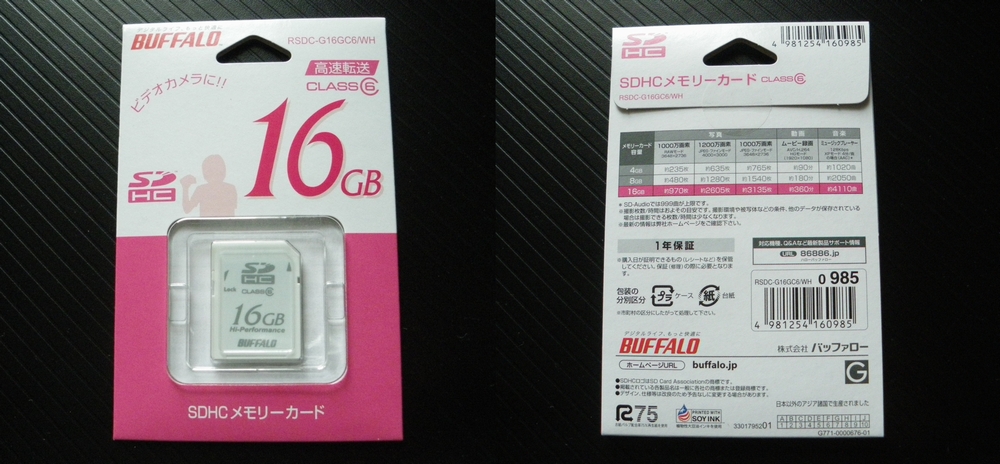 昨年末、Amazon で Buffalo の Class6 SDHC 16GB が格安で出ていたので、ついつい GET しちゃっておりました。年明け早々の体調不良のため、未開封のまま放置されておりましたが、やっと検収できました。