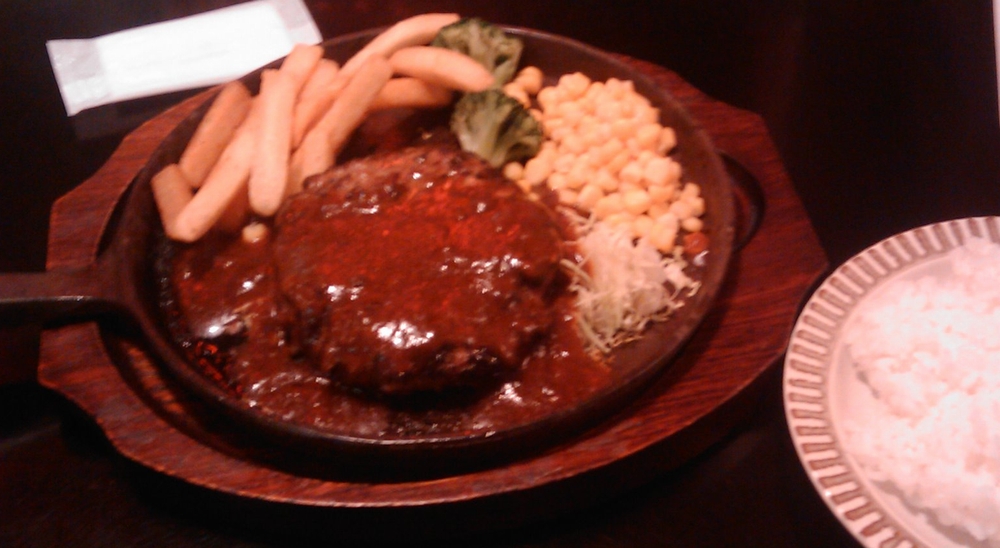 店内は広々しておりなかなか良い感じ。ハンバーガーでもイイかな・・・と思ったけど、初志貫徹でハンバーグに。200g で980円。ライスは+200円でした。