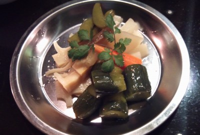 お勧めメニューのピクルス。酸っぱさがきつくなくて上品な味わい。とはいえ、ビールが進むナイスなおつまみ♪