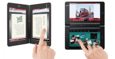 CPU は Atom Z 系ではなく Pentium U5400 (デュアルコアな1.2GHz)。699g と700g を切る重さで、1024×600 で7インチな液晶が2枚ついて、手元の方はマルチタッチでキーボードにもなるという。