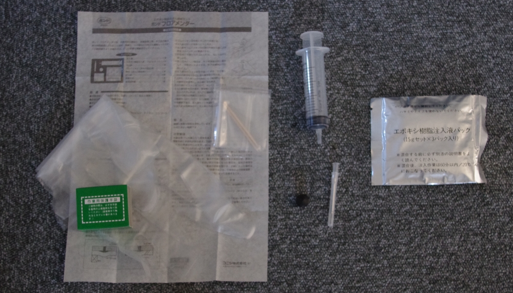 さて、夏休みにやっておきたかったことのひとつに、家のフローリング修理がありました。一部、踏むと鳴るんですよ・・・んで、色々調べたところ、意外に簡単に補修できるということで、こんなものを買ってみました。