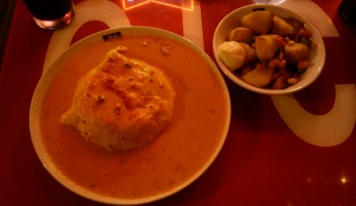 そんなわけで夕飯もご馳走になっちゃいました。Miss マイアミ という、オムライスをトマトクリームソースで戴く一品。ノーマルとスパイシーがあるのですが、スパイシーの方をお願いしました。