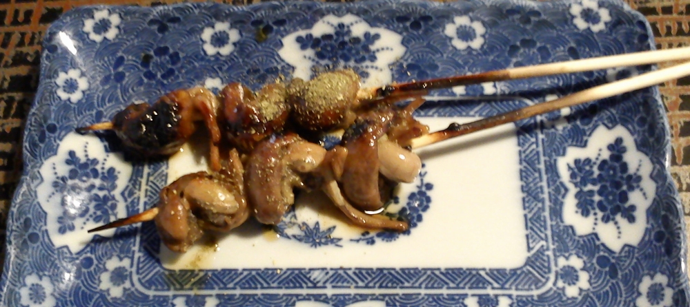 古い民家のような佇まいの和室に入りました。オーダーをすると、まずは肝焼き(1,000円)が出てきました。これが臭みゼロ。上品な味わいで本気で日本酒とか欲しくなるような逸品。これは是非オーダーすべきでしょう!!