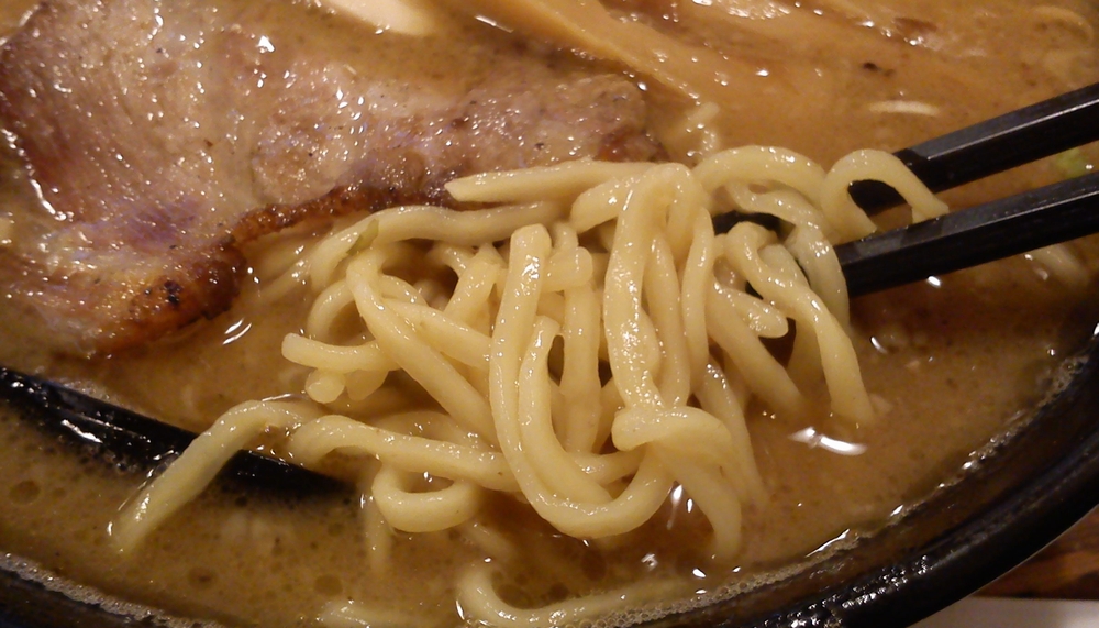 麺はつけ麺のものよりも細めですが、歯ごたえがあり、なかなかのボリューム。スープは豚骨ベースのコッテリながら甘みと時折柚子が香るつけ麺と同様のものでした。