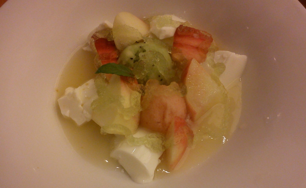 アイスコーヒーと共に、デザートとして「フレッシュ桃とミルクプリンのスープ仕立て」をオーダー。夏バテ解消にフルーツ三昧な休日です♪