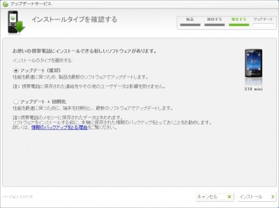 OTA でやろうとしたところ、「PC に繋いでね♪」という冷たいメッセージが出てしまったので、姉 X10 同様に PC から更新を実施してみました。
