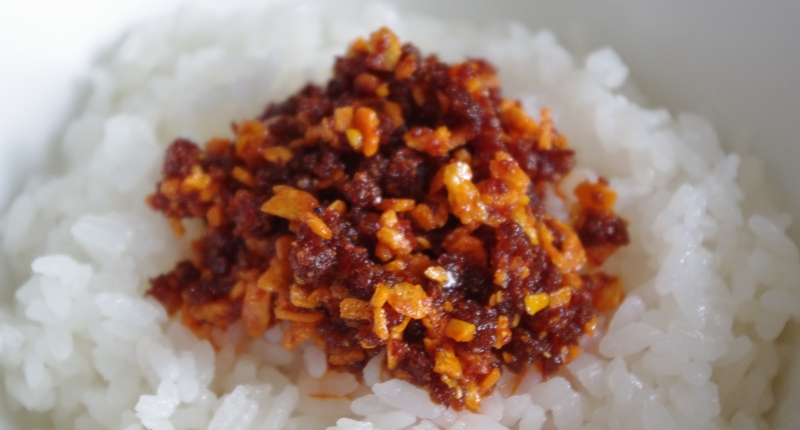 ご飯のおかずにってことなので、さっそくご飯にかけて食べてみました。