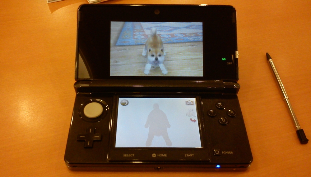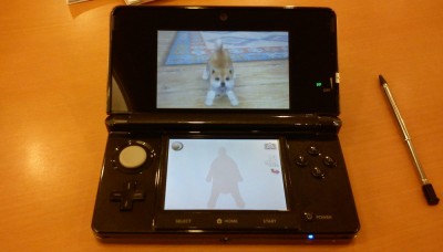 そして、持ったときの感想は「重い!!」。なんか DS Lite とほぼ同等なフットプリントなのにズッシリとした感じがあります。3D も正面から見ないとすぐにクロストークというか、視点が合わなくなるので、家でゆっくりと楽しむゲーム機な気がしました。まぁ、暇つぶしなら Android のライトゲームで十分なんですよね♪