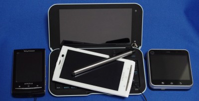 まずは最も期待していた Xperia X10 mini。タップはできます。が、反応ちょっと悪い感じ。フリック動作は・・・ペン先のゴムが液晶保護シートにまとわり付く感じで無理・・・誤認識ばかりで使い物にならんですな・・・当然文字入力なんて無理(泣)。