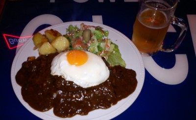 夕食を食べに行ったので、この日はカレーバーグを注文。マイルドなカレーがぶ厚いハンバーグ、そしてトロトロの目玉焼きとベストマッチング!! パワーフードの名前の通りのボリュームですが、ペロリと平らげました♪